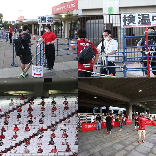 現在、浦和レッズでは入場時の検温やアルコール消毒、密を避ける座席配置をはじめとして、「Jリーグ新型コロナウイルス感染症対応ガイドライン」に基づいた感染防止対策を実施中です。