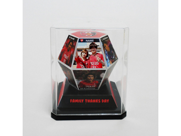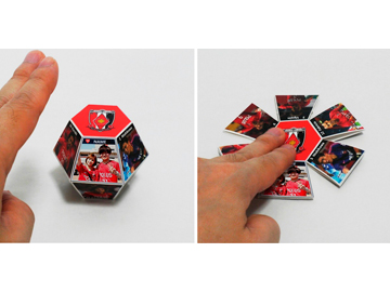 これは、浦和レッズトップチーム選手11人の写真とREX CLUB会員様からお送りいただいた写真をあわせた12枚の写真からなるフォトスタンド展開図をお作りし、ご自身で工作作業を加えて、最終的にあなただけのフォトスタンドができあがる、というものです。