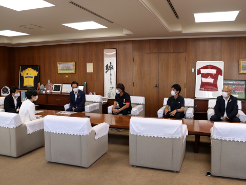 清水市長からは感謝の言葉とともに「今はコロナ禍ですが、Jリーグがある日は、浦和は真っ赤に、大宮がオレンジに、とそれぞれが染まってみんなで楽しく過ごせるようになってほしいですね」とのメッセージがあり、細田眞由美さいたま市教育委員長からは「この絵本ができた時には感動しました」と感情のこもった喜びの声をいただいた。