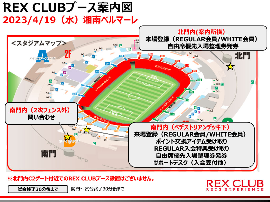 ※2023シーズンは北門内C2ゲート付近でのREX CLUBブースの設置はございません。