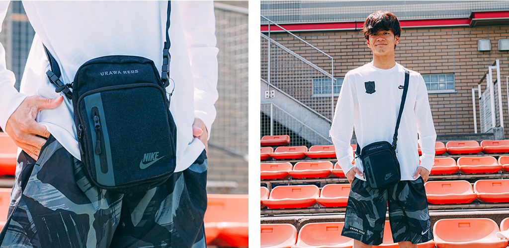 調節可能なストラップで、快適に持ち運べます。中央上にクラブロゴをワンポイントでデザイン。