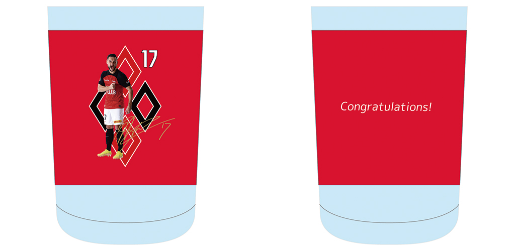 お好きな選手のデザインとオリジナルメッセージをいれることができるグラスです。
