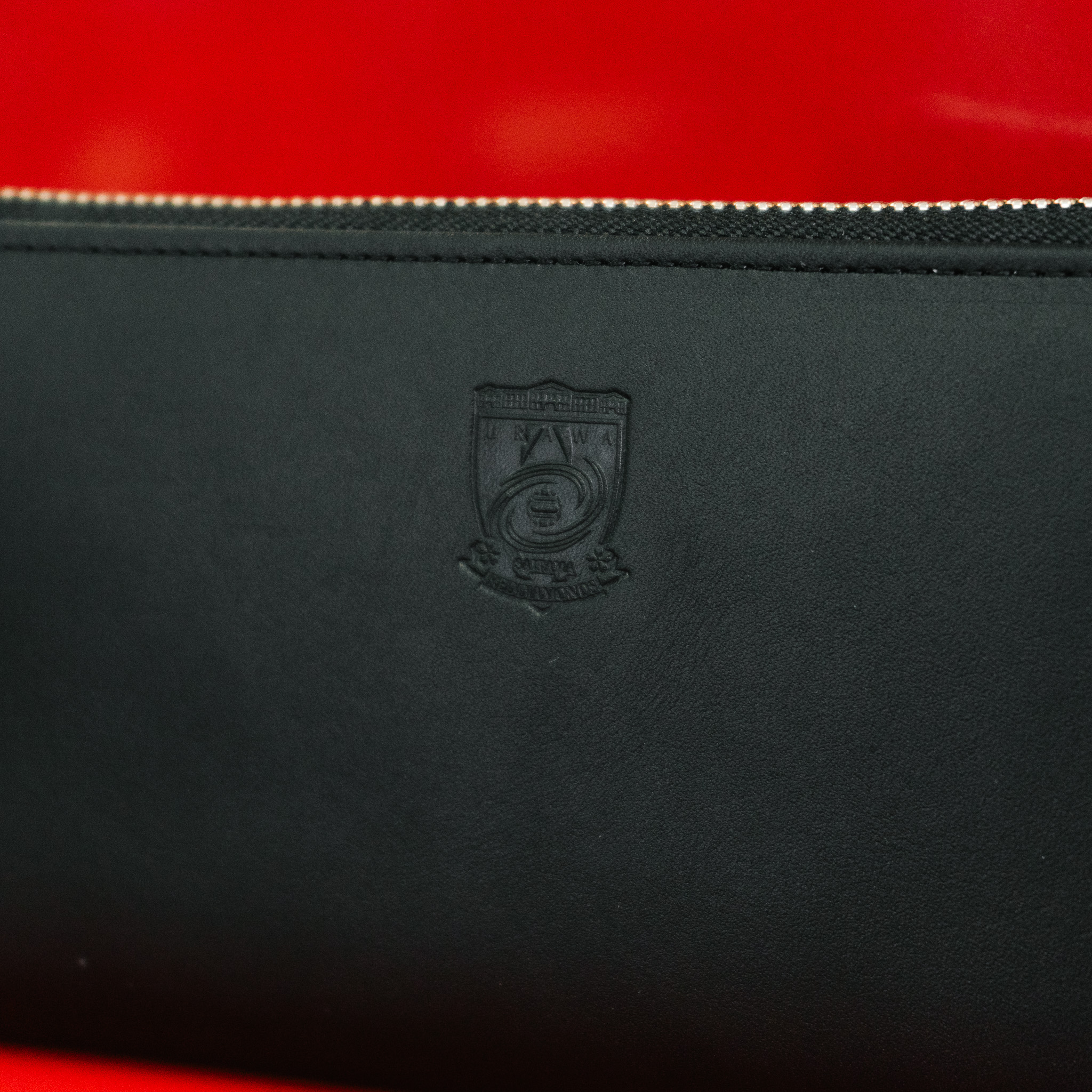 ビジネスシーンに品格をもたらす、上質な印象を与える本革製の名刺ケース。シンプルなデザインにチームの誇りをさりげなく型押ししました。