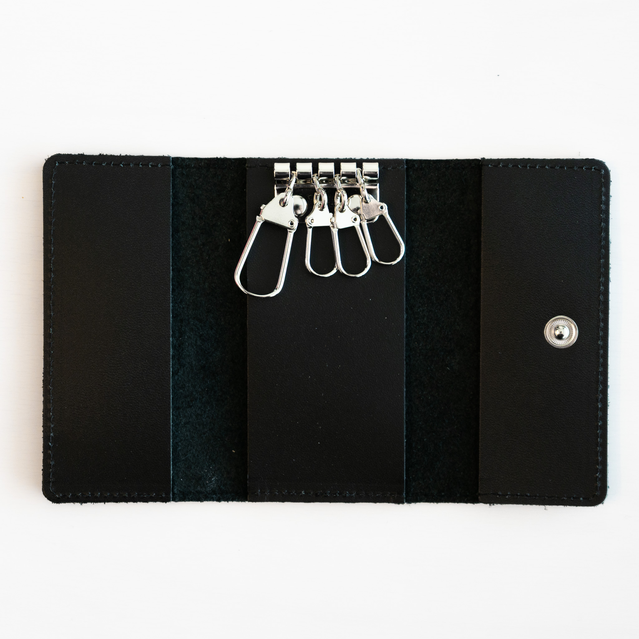 4連フックで複数の鍵をすっきりと収納でき、スナップボタン仕様で中身が飛び出す心配もなく安心。流行に左右されないシンプルで洗練されたデザインは、日常使いはもちろん、ギフトにも最適です。