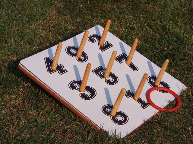 手持ちの輪は5本。的を狙って輪を投げる、シンプルで楽しい輪投げゲーム。小さなお子さまも安心してご参加いただけます。