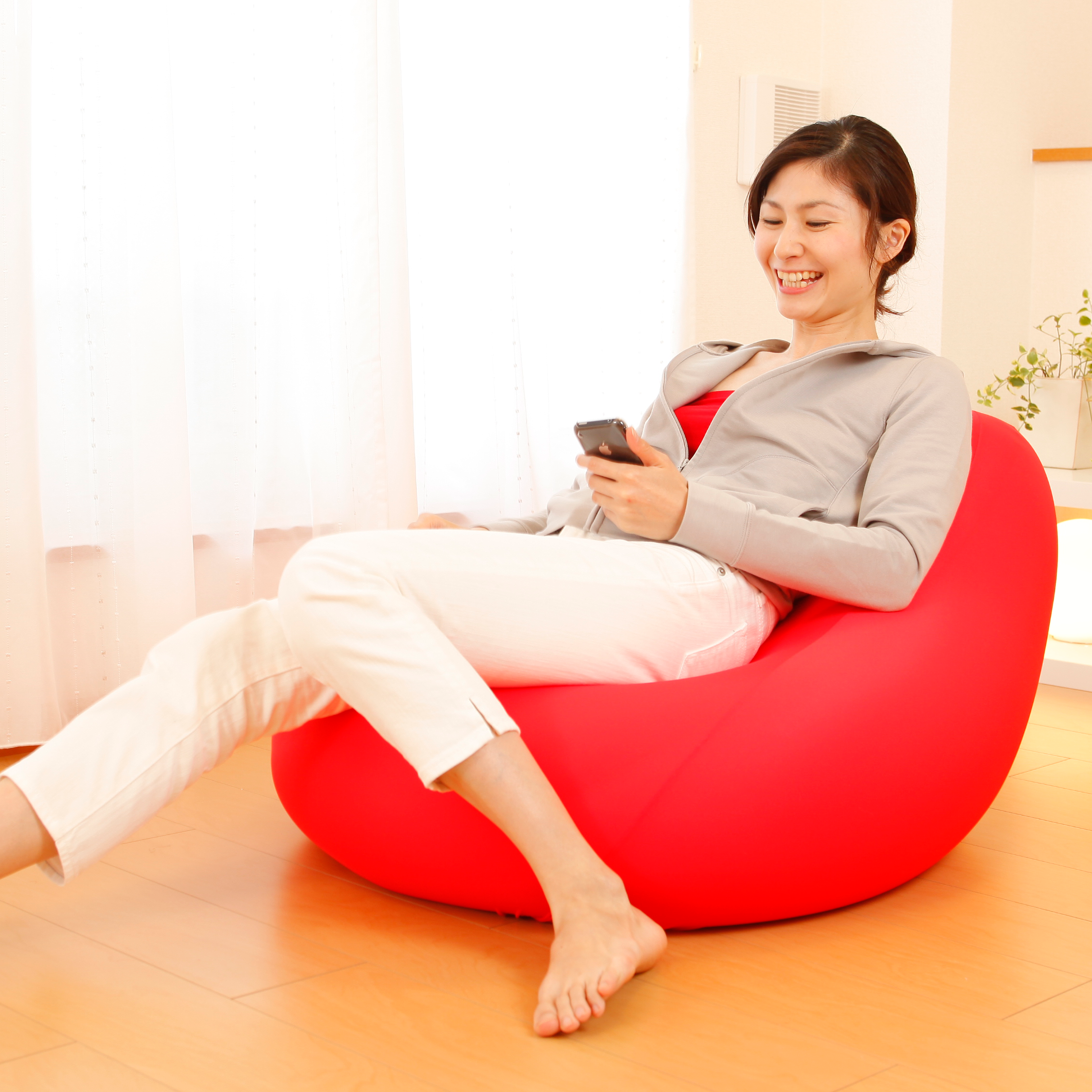 極小ビーズを使っているため、自由自在に形が変えられるので、座って使ったり、お昼寝にも使ったりできるソファです。