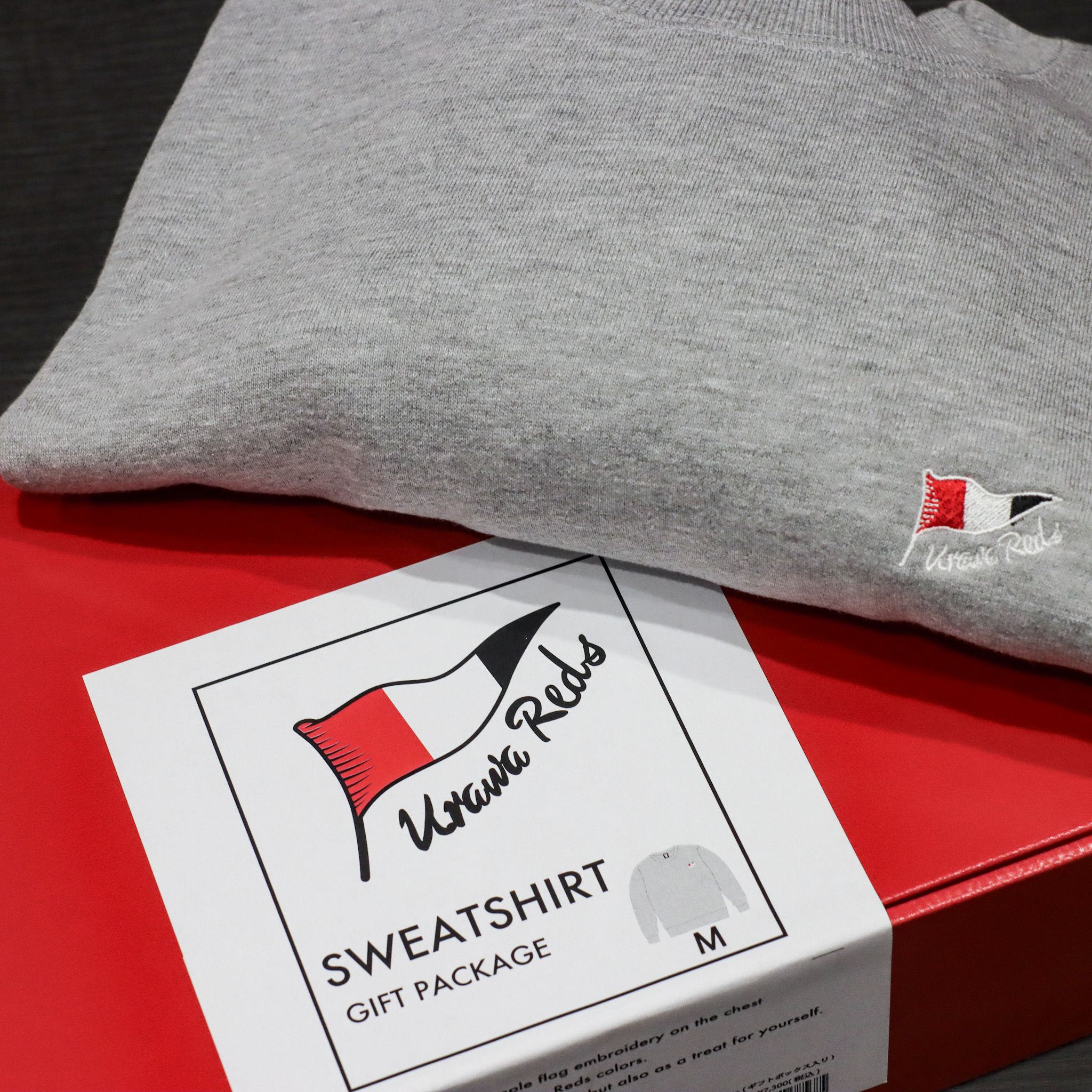 胸元のシンプルなフラッグ刺繍が映える一枚を、クラブカラーの真っ赤なギフトボックスに収めました。