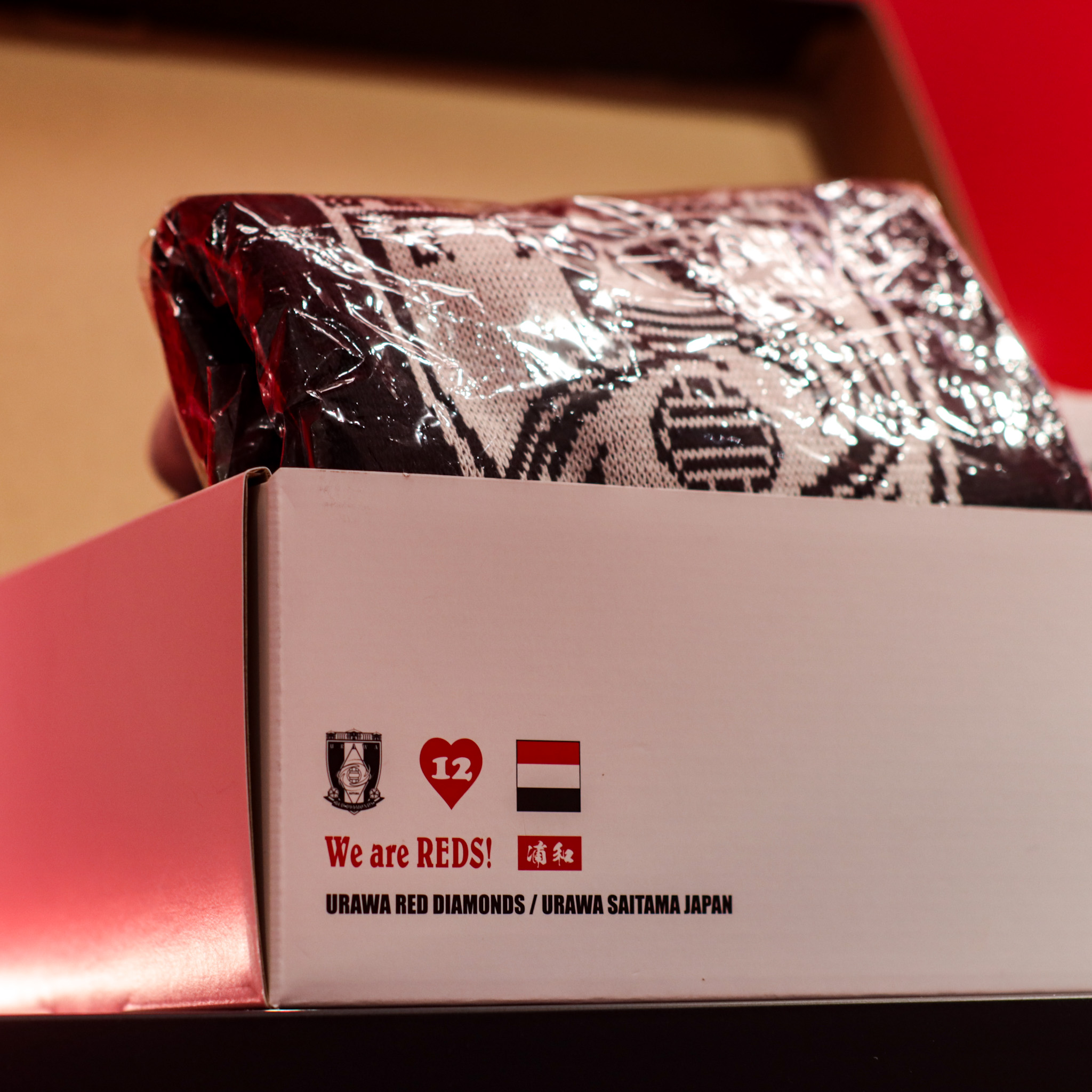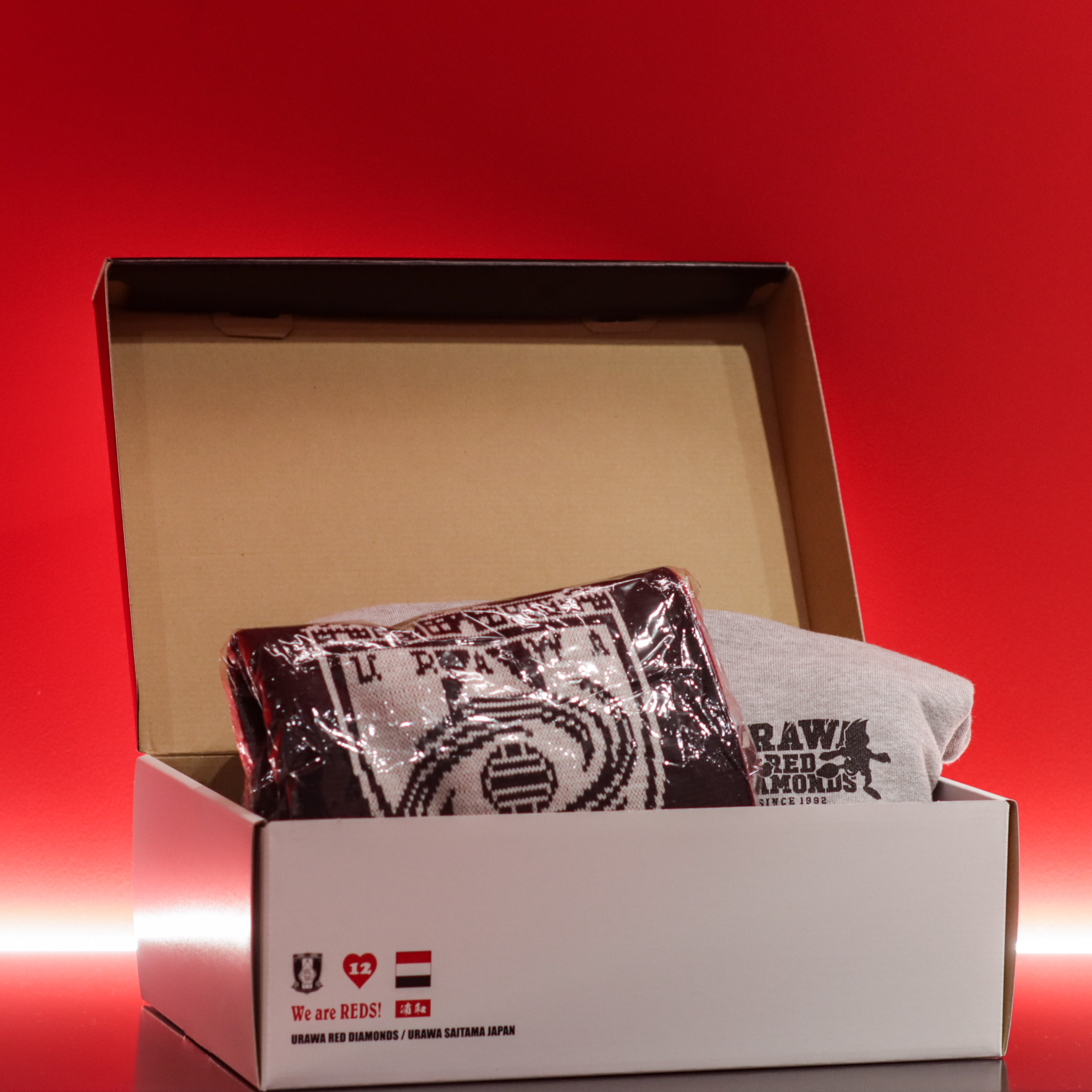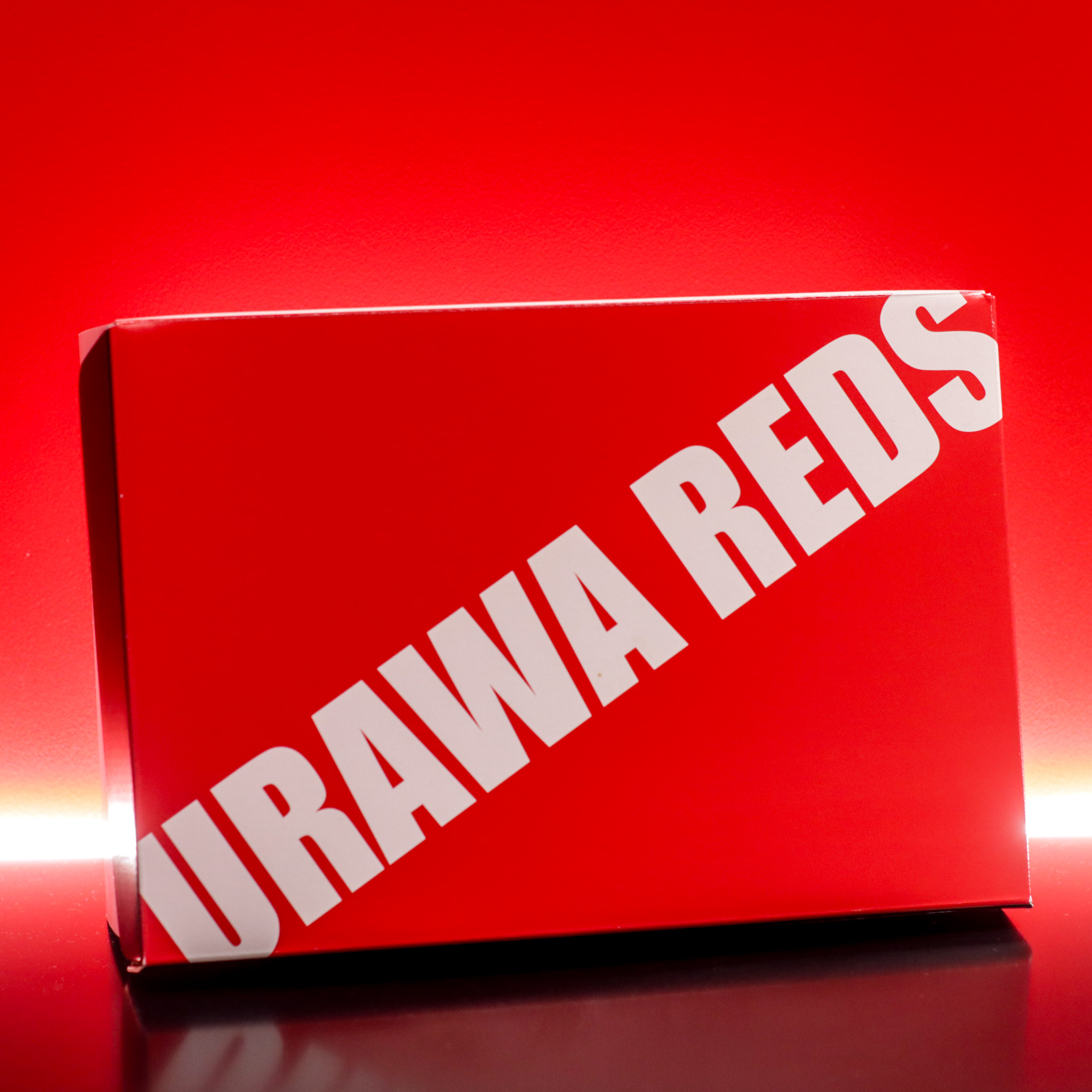 浦和レッズのロゴを大胆にあしらった、シューズボックス型の収納ケース。