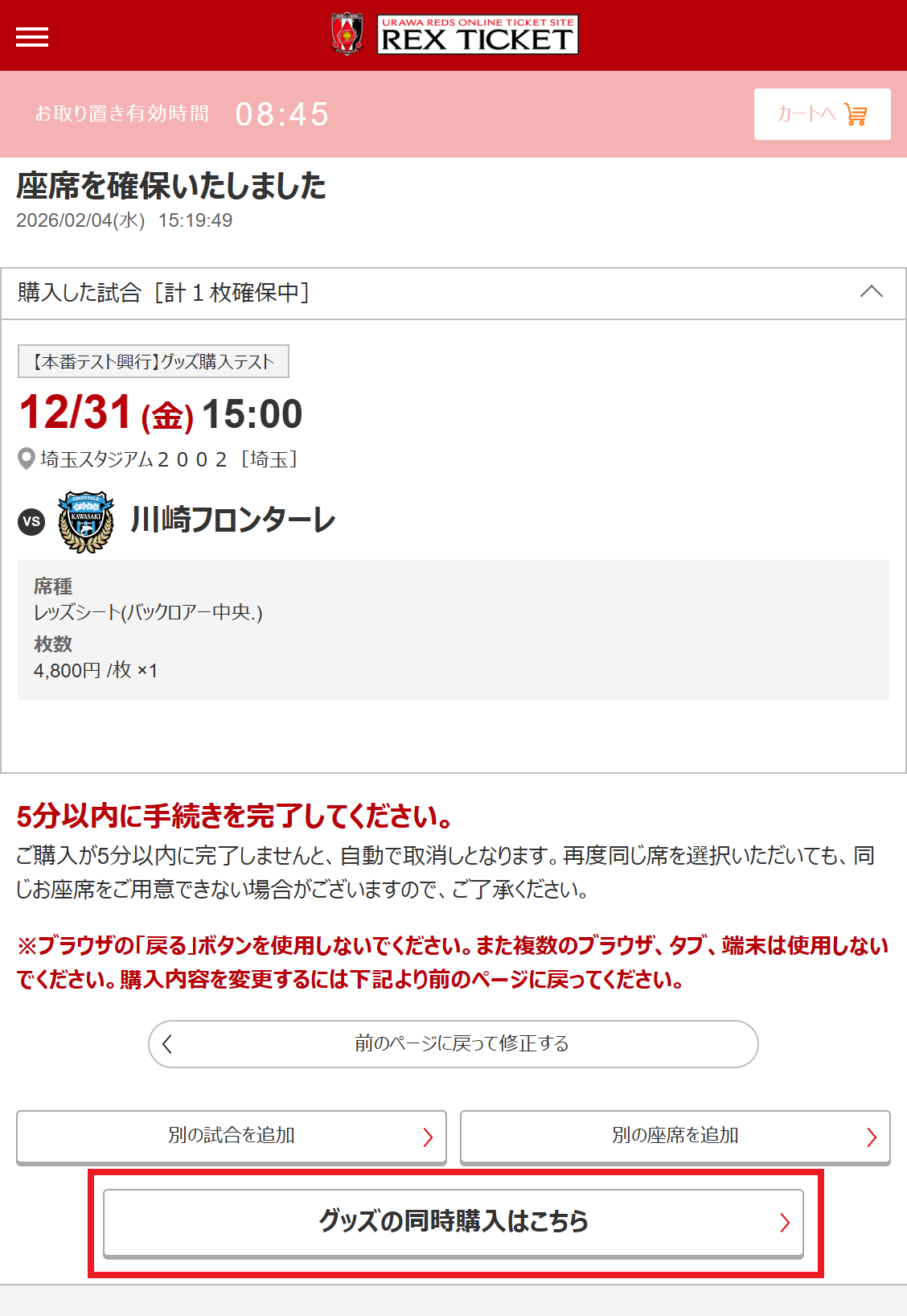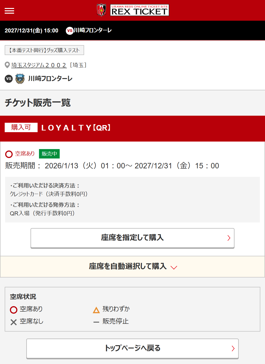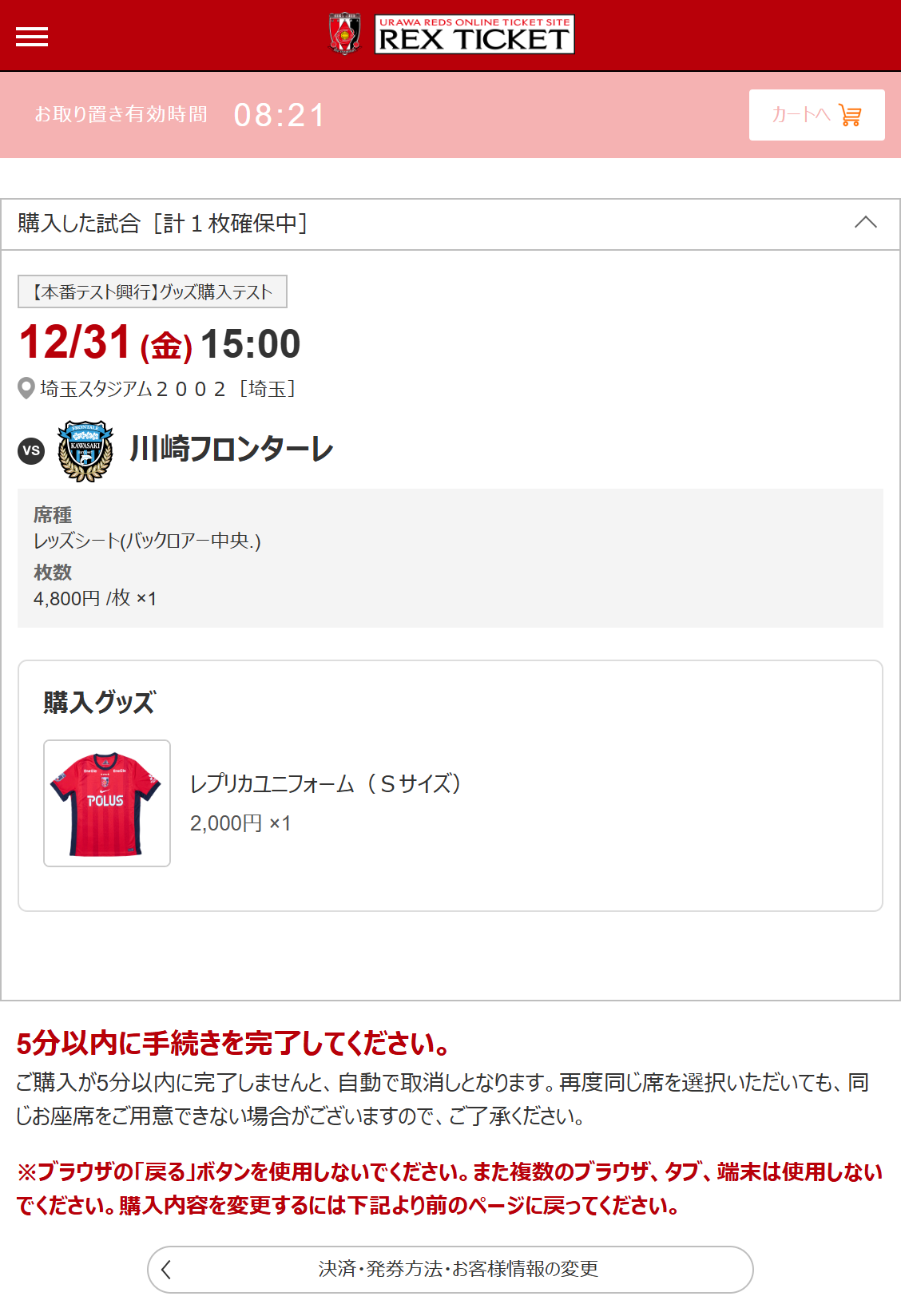 ・万が一、当日お受け取りいただけなかった場合は、次戦の埼玉スタジアム2002での試合開催日に、南門チケット案内所にて引換いたします。