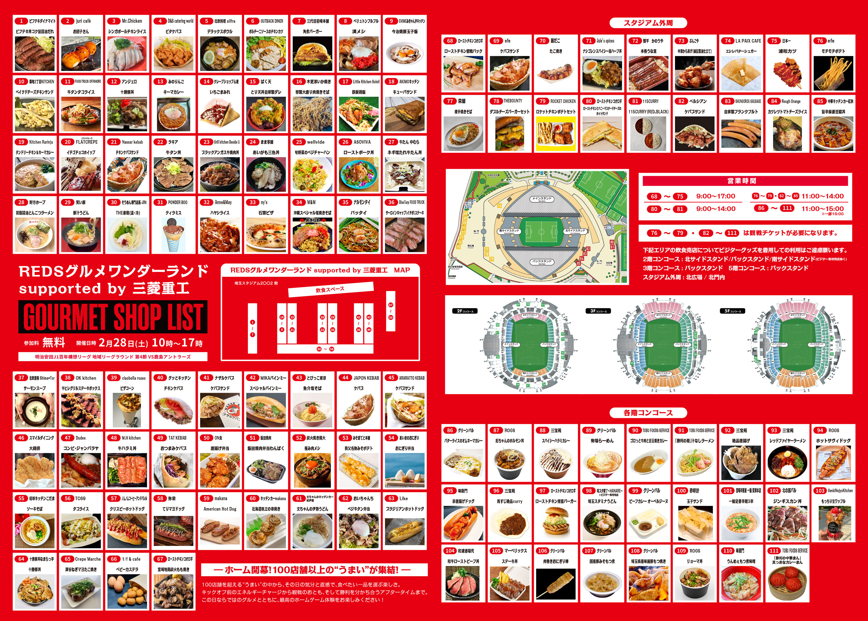 ホーム開幕戦2月28日(土)第4節 鹿島アントラーズ戦【MATCH PARTNER ポラスグループ】にてスタジアムグルメイベント「REDSグルメワンダーランド supported by 三菱重工 -ホーム開幕!100店舗以上の“うまい”が集結!-」を開催いたします。
