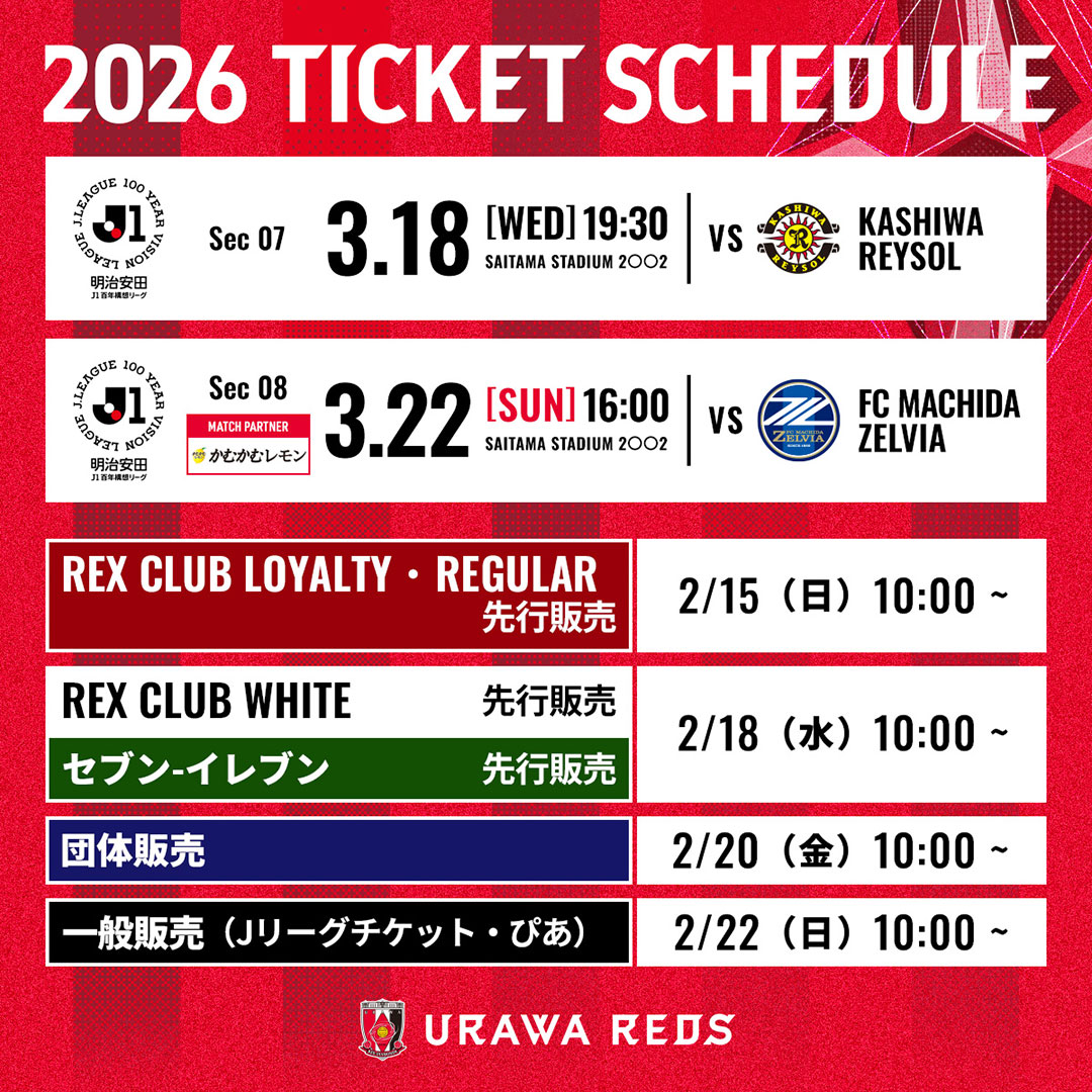 - 日頃より浦和レッズへの熱いサポートをいただき、誠にありがとうございます。また、このたびは多くのみなさまに明治安田J1百年構想リーグシーズンチケットをお申込みいただき、重ね …