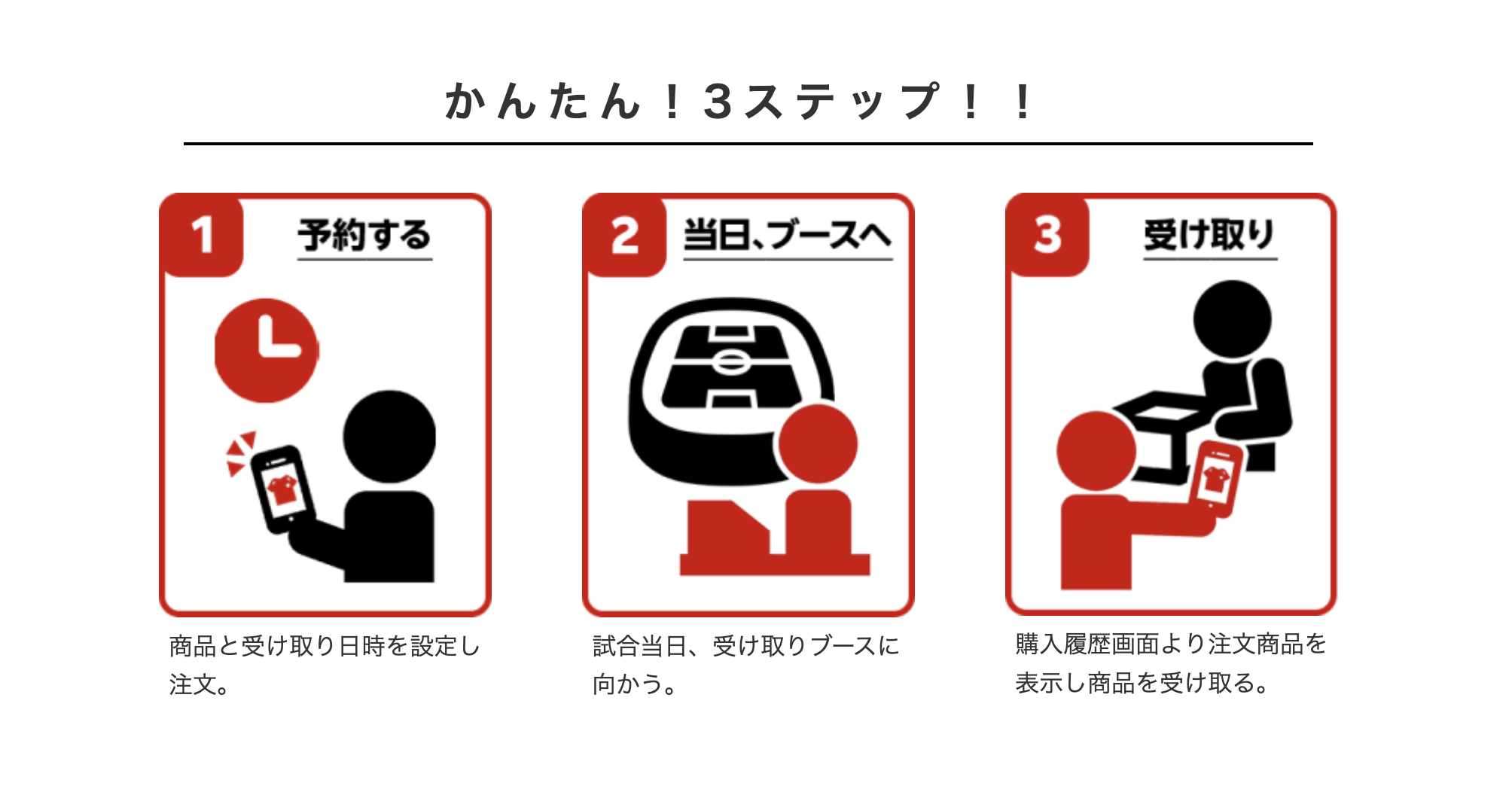 (3)スタジアムの受け取りブースにて購入履歴画面を提示する