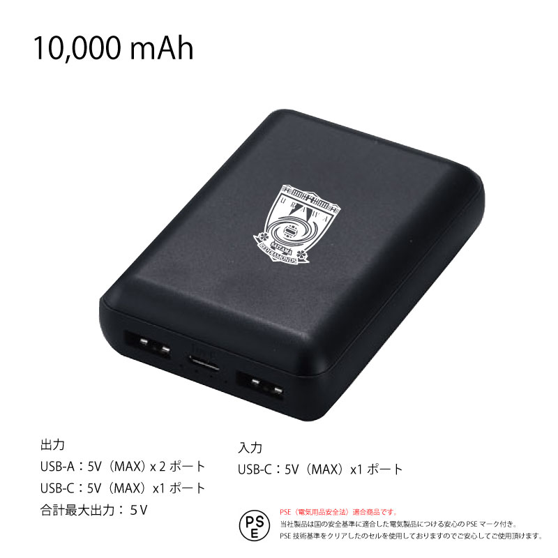 10,000mAh ※スマートフォン約4回分の充電が可能(目安)
