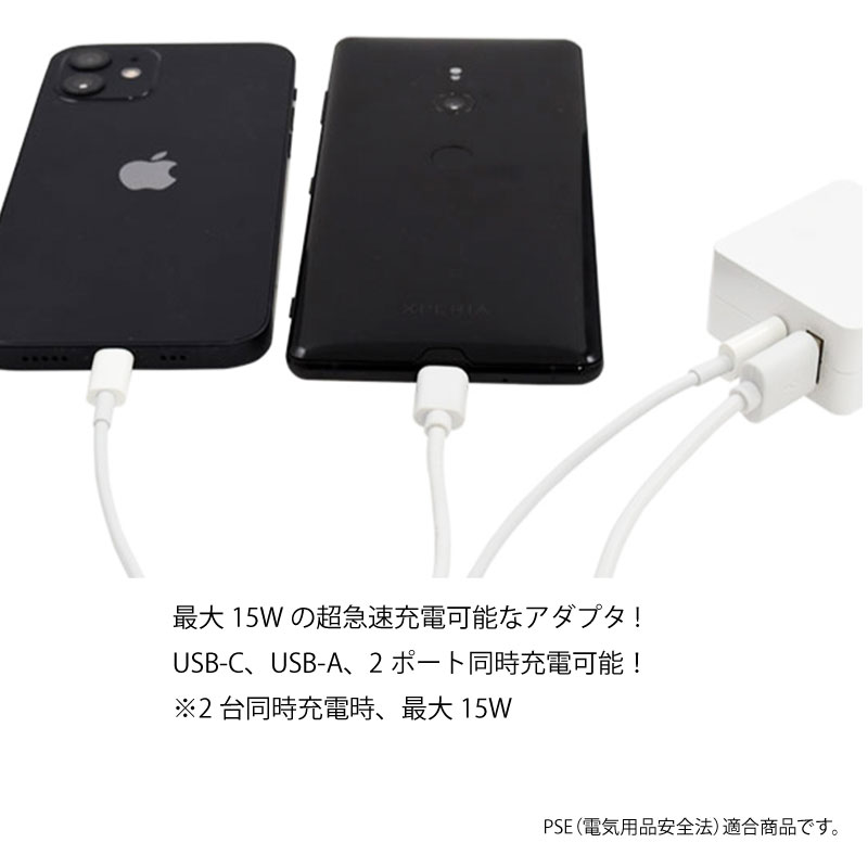 最大15Wの超急速充電可能なACアダプタ。