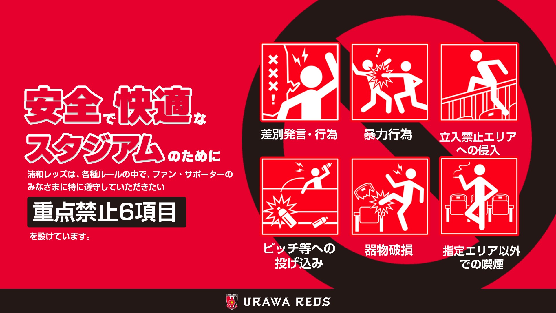 18日(水)、埼玉スタジアムにて行われます『明治安田J1百年構想リーグ 地域リーグラウンド 第7節vs 柏レイソル』にご来場いただくみなさまにおかれましては、事前に観戦ルールおよびマナーについてご確認をお願いいたします。