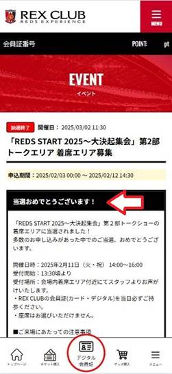 お申込期間中にREX CLUBマイページにログインしていただき、「イベント・抽選」のページより、本プログラムの抽選にご参加ください。