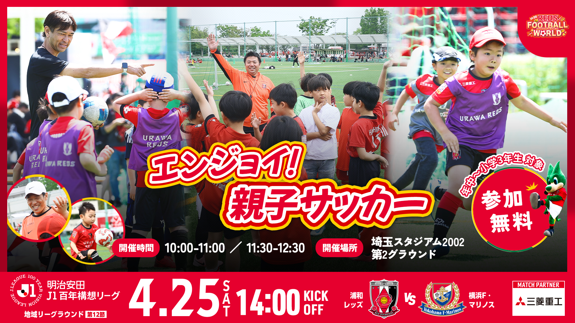 さらに当日は、浦和レッズOB選手も参加予定!参加費は無料!親子でボールを蹴って、笑って、思いきり楽しめる特別な1日をお届けします。はじめてのサッカー体験にもぴったり!ぜひ親子でお気軽にご参加ください!