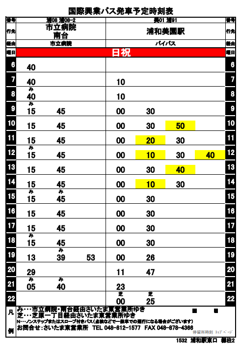 ・臨時便は終点「浦和美園駅西口」までの間、通常の路線バス同様、他の停留所にも停車いたします。