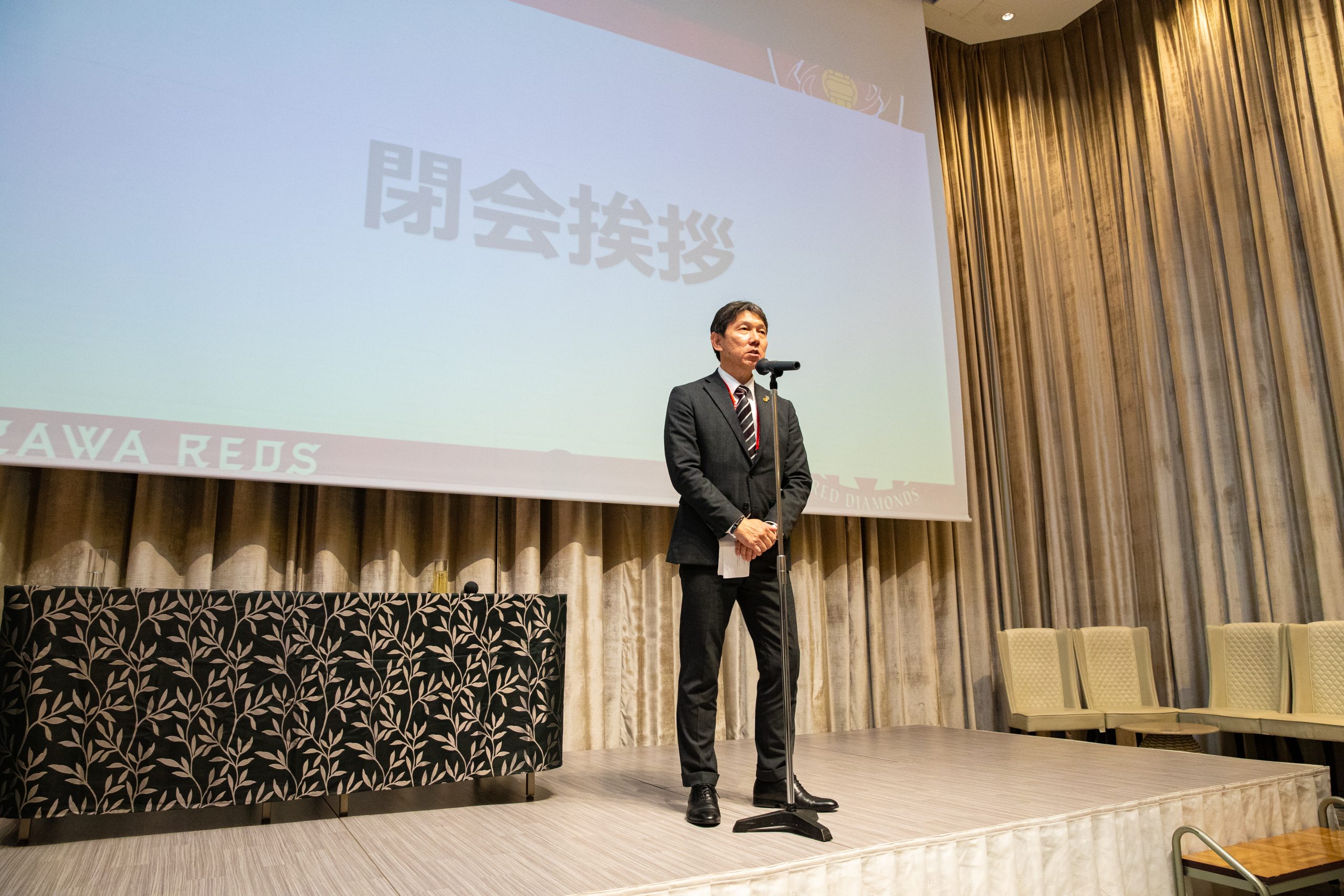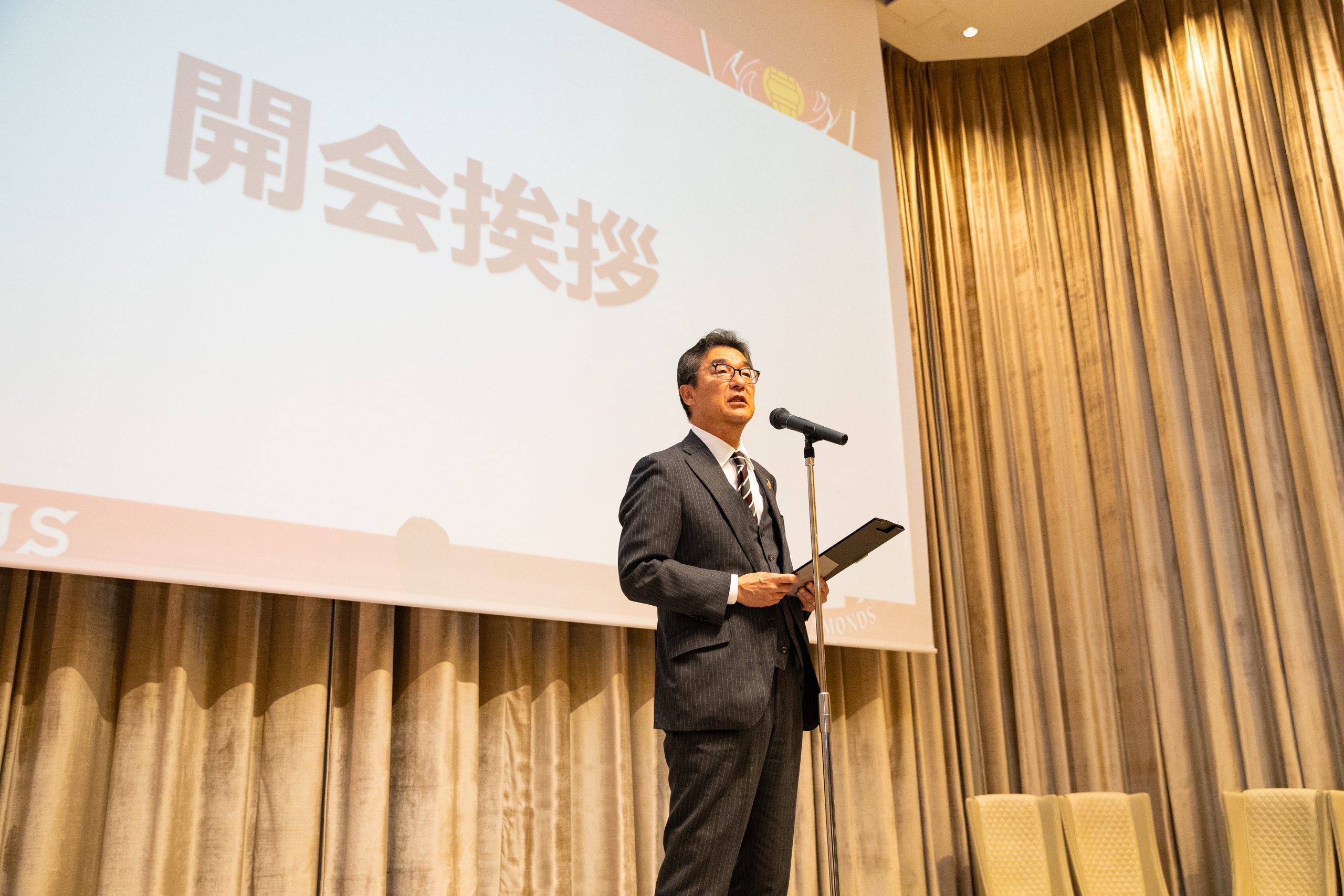 冒頭、田口 誠代表より「RBCを通じて生まれる交流や地域貢献の輪が、より大きな広がりを見せている。この会が新たなご縁やコラボレーションのきっかけとなることを願っている」とあいさつが行われ、日ごろからのご支援への感謝に続けて、Jリーグ秋春制移行にも触れてクラブとしてさらなる事業拡大を目指す姿勢を語り、ビジネスミーティングがスタートした。