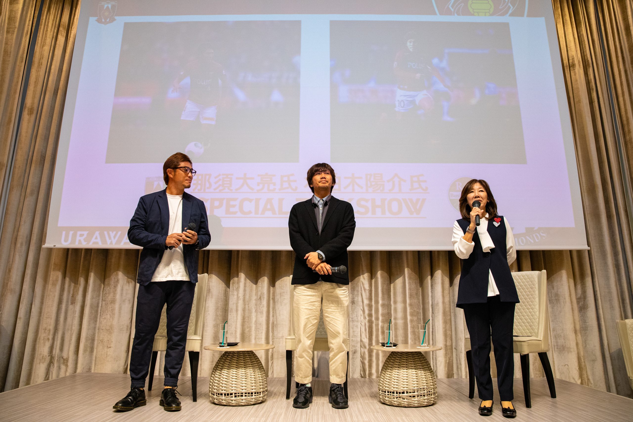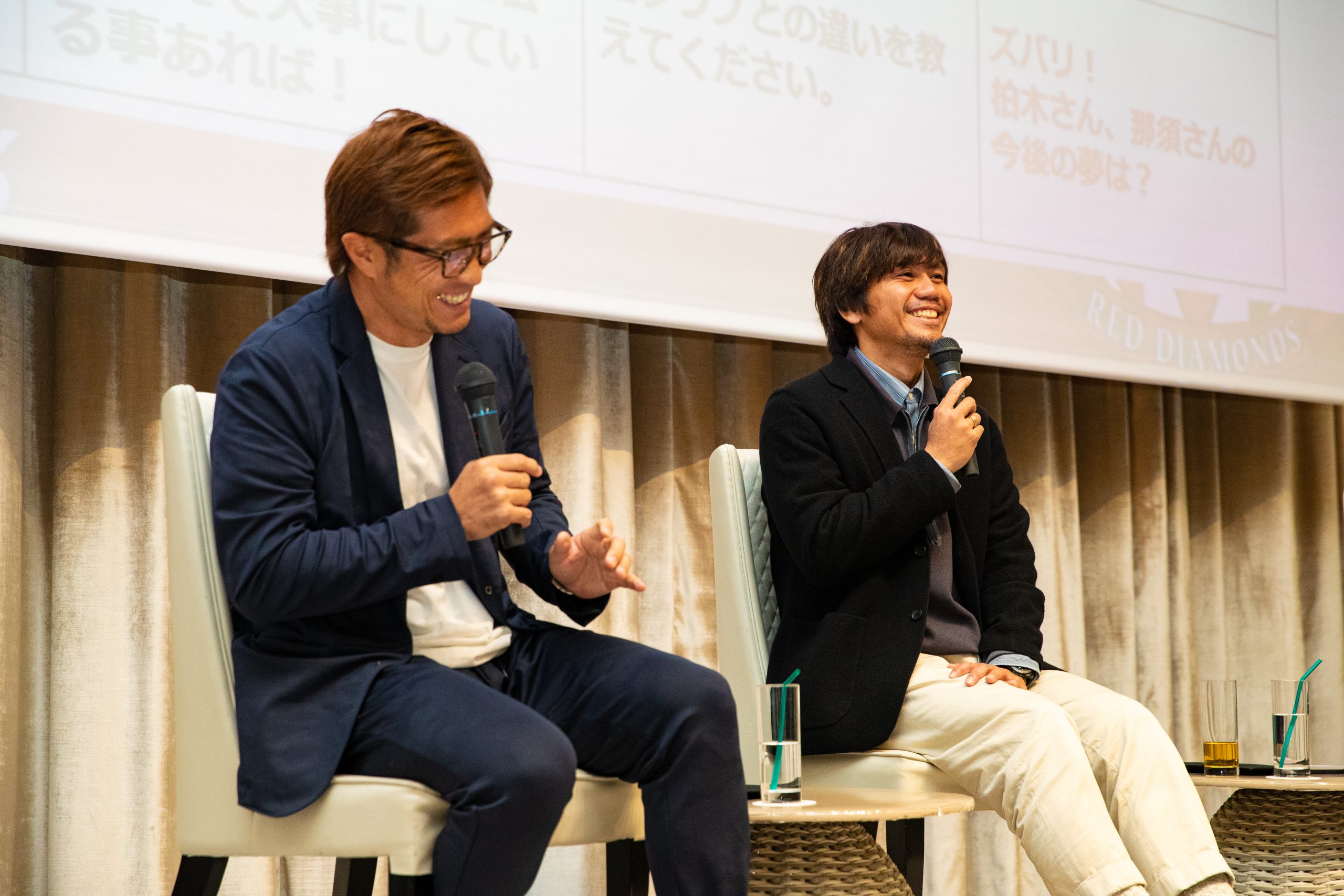 司会の朝井夏海氏より、スペシャルゲストとして浦和レッズOBの那須大亮氏と柏木陽介氏が紹介され、トークショーでは現役時代のエピソードや浦和レッズについて、引退後のキャリア形成など、多彩な話題で会場を盛り上げた。両氏の軽快な掛け合いに、笑いが起こる場面も多く、RBCビジネスミーティングならではの特別感溢れる時間となった。