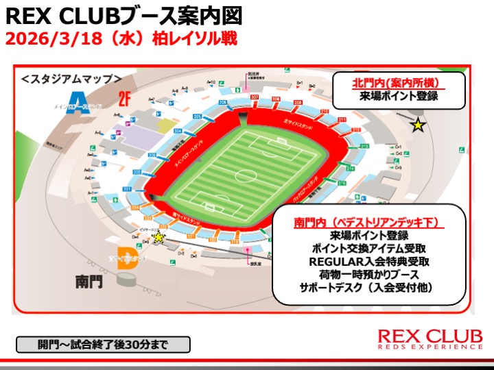 When home games are held at Saitama Stadium 2002, a luggage storage service (for a fee) will be available at the REX CLUB booth inside the South Gate.