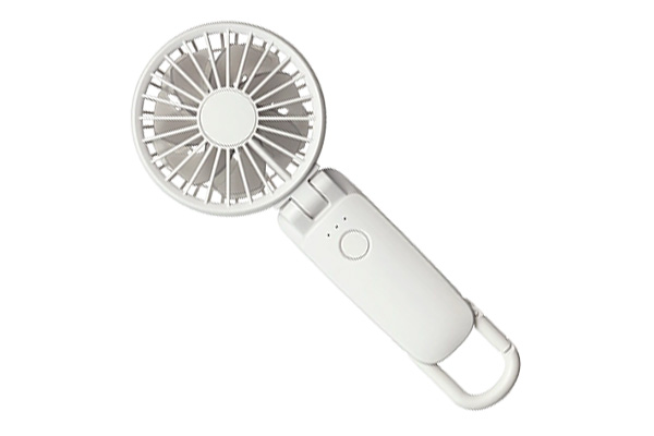 想像を超えた大風量が特長のハンディファン。ハンディ・ハンズフリー・デスクの3WAYで使え、5段階の風量調整が可能です。