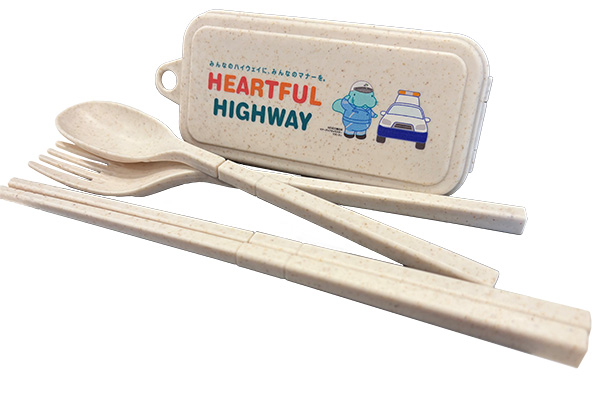 NEXCO東日本の交通安全マナーアップキャラクター「マナーティ」のカトラリーセットです。