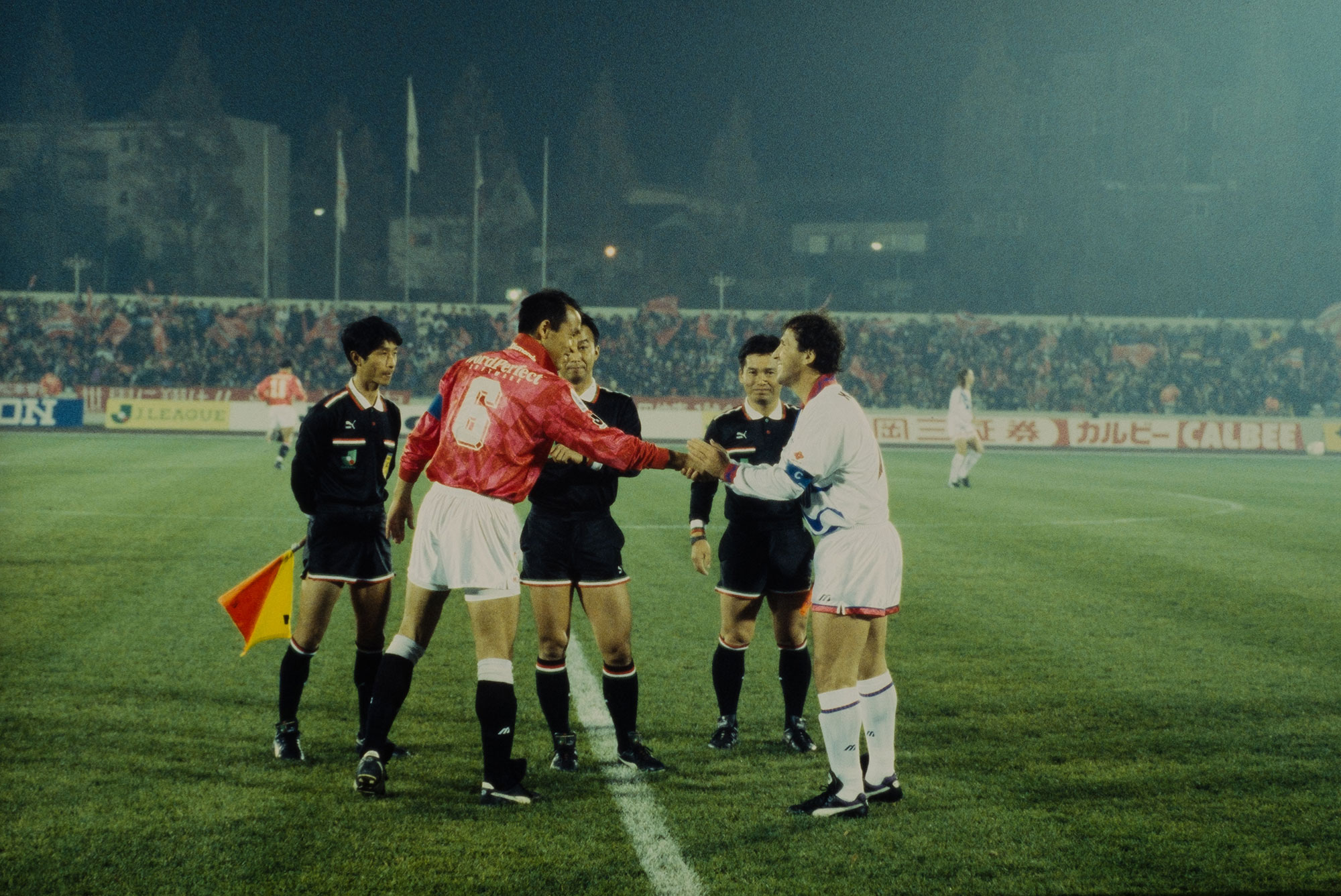 この日のテレビ局やカメラマンの唯一の狙いは、鹿島の宮本征勝監督やジーコの「胴上げ」だった。だが鹿島はその期待を裏切った。試合終了後、白いユニホームに身を包んだ鹿島の選手たちは、500人余りのサポーターが陣取るスタンドの前まで行って手を振ると、そのままロッカールームに引き上げてしまったのだ。当然、報道陣からは怒号が飛んだ。鹿島は翌節のサンフレッチェ広島戦(「サドンデス」での不運な敗戦だった)の後、超満員のカシマスタジアムのファン・サポーター大歓声のなか、監督たちの胴上げを行った。