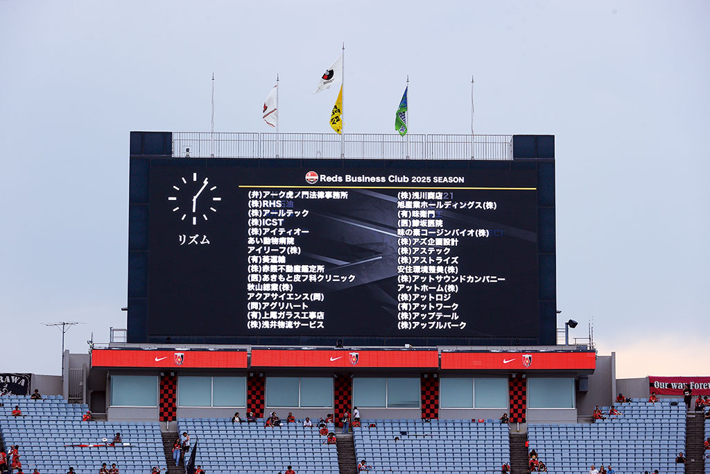 埼玉スタジアム2002での社名看板の掲出やオーロラビジョン、浦和レッズ公式ウェブサイトなど、貴社名露出の機会を複数ご用意しております。また、一部のコースではRBCロゴの使用権も特典となっております。
