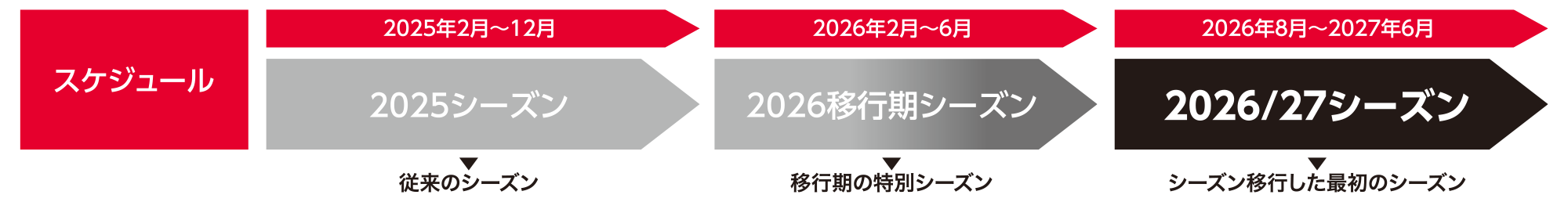 12月~翌年2月は冬季中断期間(ウインターブレーク)とし、欧州基準のスケジュールに合わせたシーズンとなります。