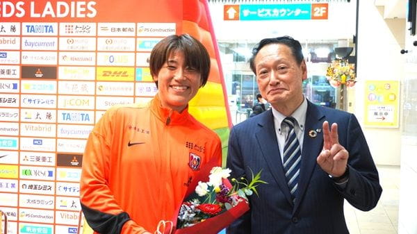 冒頭には、なでしこジャパンの一員として活躍し、『AFC女子アジアカップ オーストラリア2026』優勝を獲得した高橋はな選手に対し、コミュニティプラザ・コルソを運営する浦和商業開発株式会社の細渕俊夫代表取締役社長より、お祝いの花束が贈呈されました。