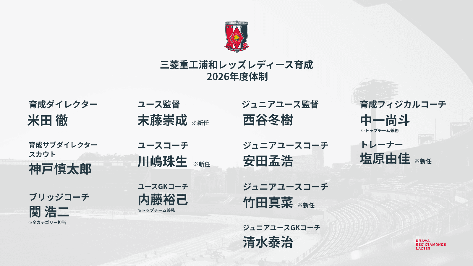 2026年度 レッズレディース育成指導体制のお知らせ