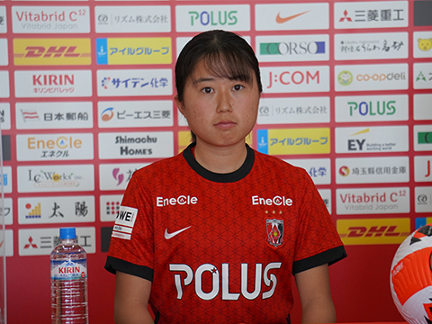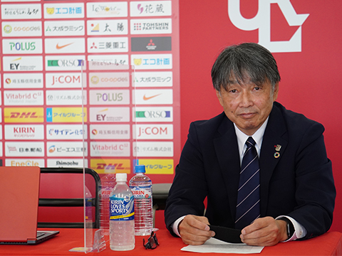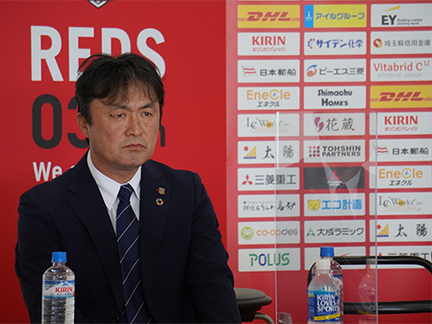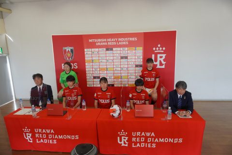 「みなさん、こんにちは。今日はお集まりいただき、ありがとうございます。新加入選手の会見を迎え、5名の選手が加入となりました。彼女たちを迎えることは、非常に大きな喜びと責任を感じています。リーグ戦はご存知のように3位で折り返しましたが、後半戦も10試合しかありません(延期分を含めるとリーグ終了までに11試合)。レッズレディースとしては、負けは許されないと思っていますので、新加入の選手たちも新加入と思わずに試合に出て、勝利を必ず取るという責任感のもと、プレーをしてもらえたらと思います。また、皇后杯という大事な舞台が待っています。まずは、その試合に向けてチーム一丸となって、良い結果を出していきたいと思います。