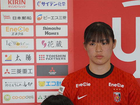 「ユースから昇格をしました背番号26、丹野凜々香です。先輩方からたくさんのことを学び、成長し、自分自身、選手としても人としてもレベルアップできるようにがんばります。そして、レッズレディースやなでしこジャパンを代表する選手になれるよう、がんばっていきます。よろしくお願いします」