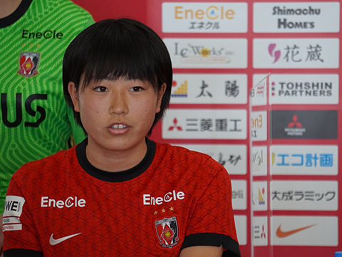 「レッズレディースは、とてもレベル高いですが、自分自身、一日一日の練習を一生懸命全力で取り組み、WEリーグデビューを果たせるようにがんばります」