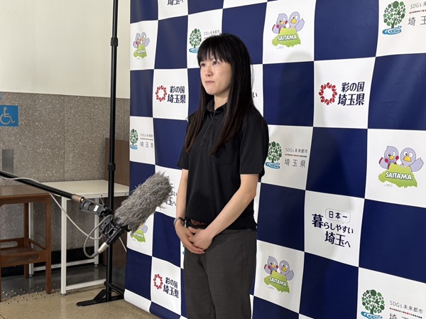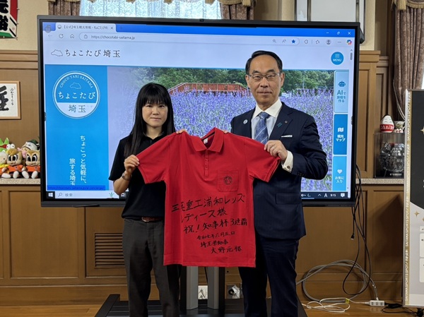 6月5日、三菱重工浦和レッズレディースの柴田華絵選手、清水稔副社長、レッズレディース本部の丸山大輔本部長が埼玉県庁を訪問し、知事杯の授与式に出席しました。