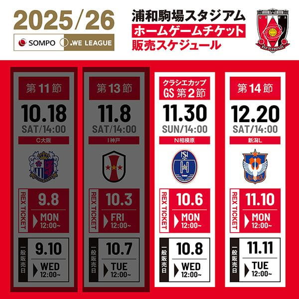 日ごろより三菱重工浦和レッズレディースをサポートいただき、ありがとうございます。 2025/26シーズンのホームゲームのチケット販売概要は以下の通りです。