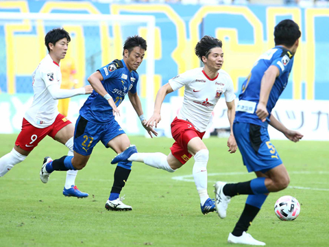 前半の終了間際にはレッズのチャンスが続いた。39分に汰木康也のパスを受けた山中亮輔が左サイドからクロス。ゴール前に飛び込んだ興梠慎三には合わなかったが、競り合いでこぼれたボールに反応した長澤和輝がシュートを放つ。しかし相手に触られてわずかに枠を外れた。