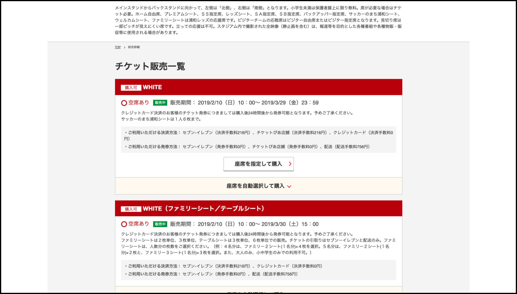 (平日開催試合時は、キックオフ3時間前~キックオフ30分前まで)