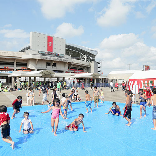 南広場でのイベントや公園でスポーツができるなど試合前の楽しみも充実!