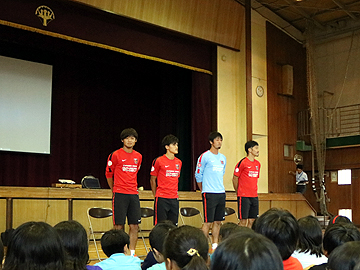 15日、阿部勇樹、大谷幸輝、岡本拓也、高木俊幸の4選手が、さいたま市立上落合小学校を訪問し、児童たちに自分たちの体験をもとに、挑戦することの大切さなどを伝えたほか、レクリエーションでは児童たちと一緒に体を動かして交流を図った。