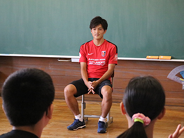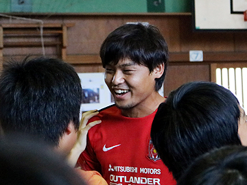 「体育館では子供たちと一緒にレクリエーションをしましたが、みんないい子たちで楽しかったです。その後は教室に行って子供たちからいろいろな質問を受けましたが、僕を困らせるような質問もなかったですし、みんな真面目ないい子たちでした。昨シーズン、ギラヴァンツ北九州に在籍していたときは2回くらこのような経験をさせていただきましたが、レッズでは初めてでした。北九州にいたときよりは上手くできたと思います。子供たちには、このまま真っ直ぐに成長していってほしいです」