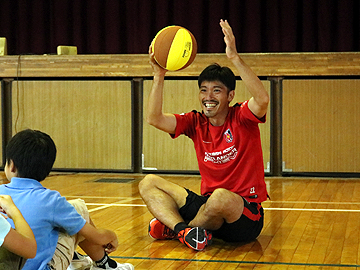 選手たちは、5時間目に体育館で6年生の児童123名と一緒に、ジャンケンゲームやクラス対抗のボール送りゲームなどのレクリエーションを行って打ち解けた後、6時間目は4選手が小学6年生の4クラスに一人ずつ分かれて、自身の経験談を児童たちに伝えた。