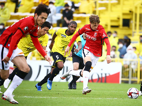終盤には槙野が前線に上がり、ペナルティーエリア内に侵入してシュート。これは相手に弾かれてCKとなったが、そのCKから汰木がゴール前に送ったボールを槙野、途中出場の興梠慎三と頭でつなぐと、最後は途中出場の伊藤(敦)が豪快にボレーシュート。これがゴール左に突き刺さり、90+2分に伊藤(敦)のプロ初ゴールで1点を返した。