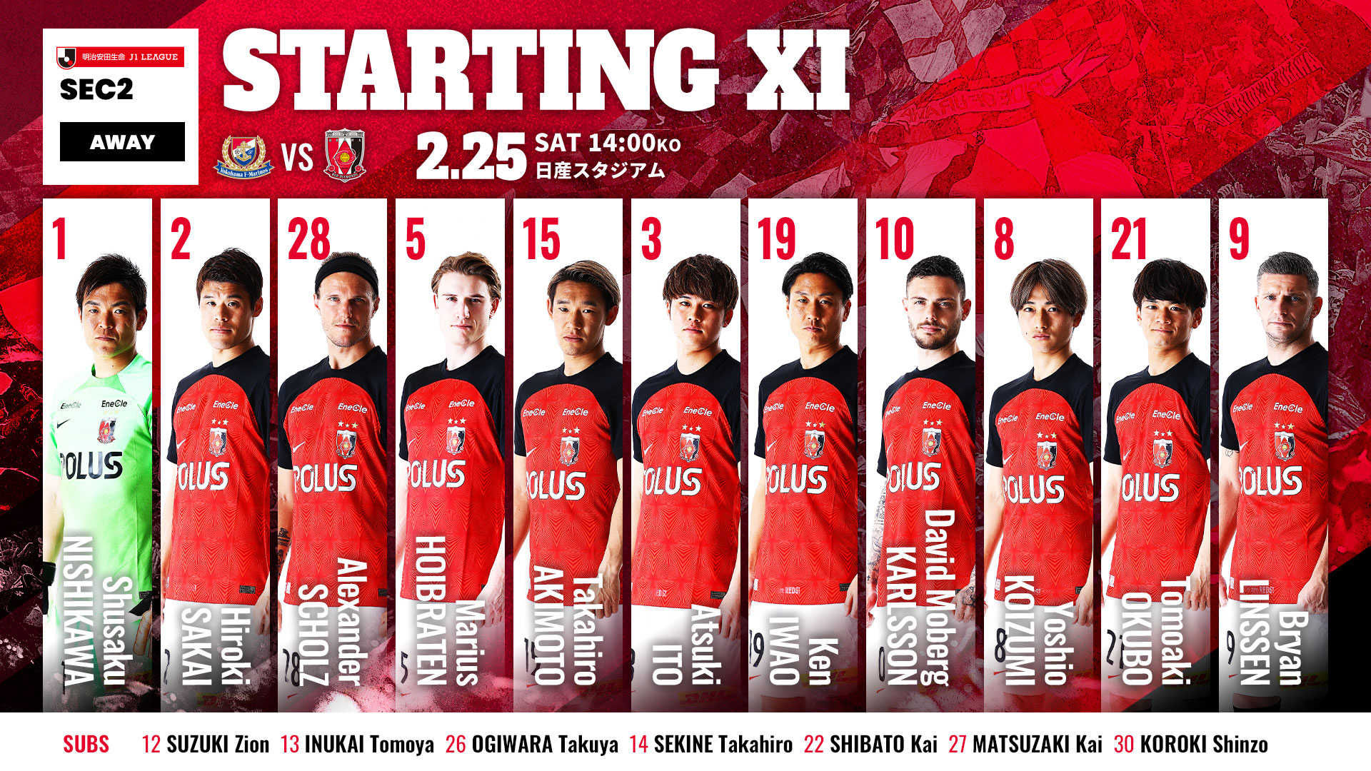 25日(土)、日産スタジアムにて行われます『2023明治安田生命J1リーグ 第2節 vs 横浜F・マリノス』の試合情報をお知らせいたします。