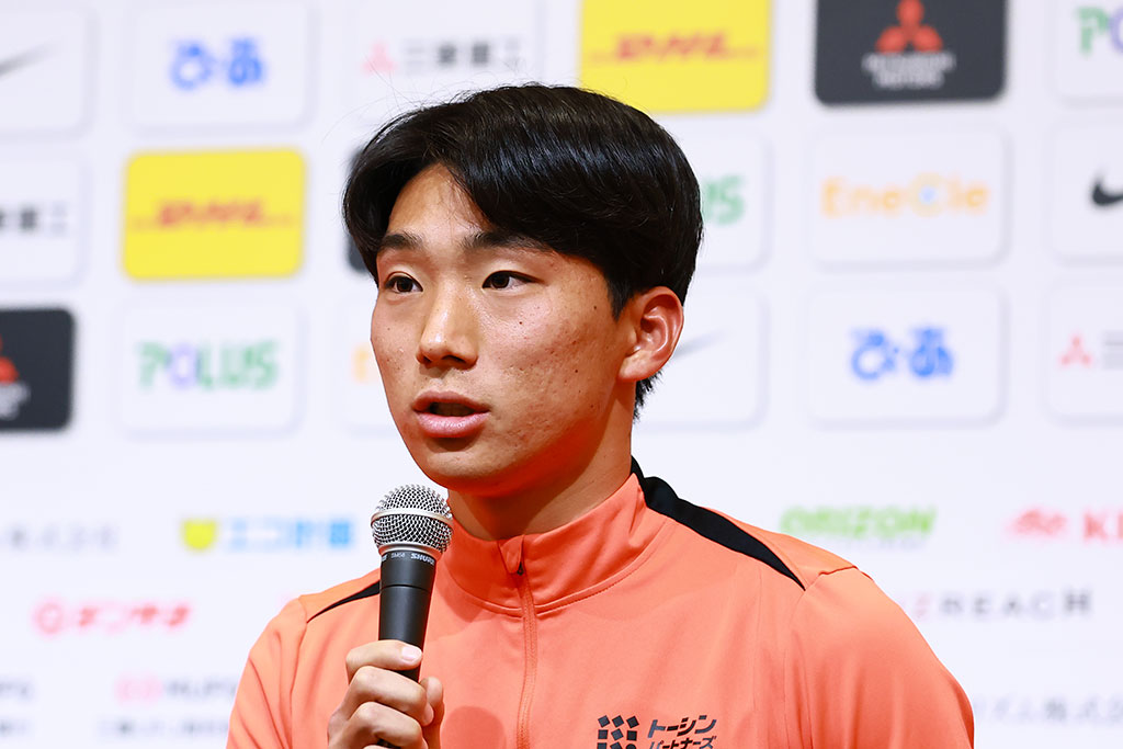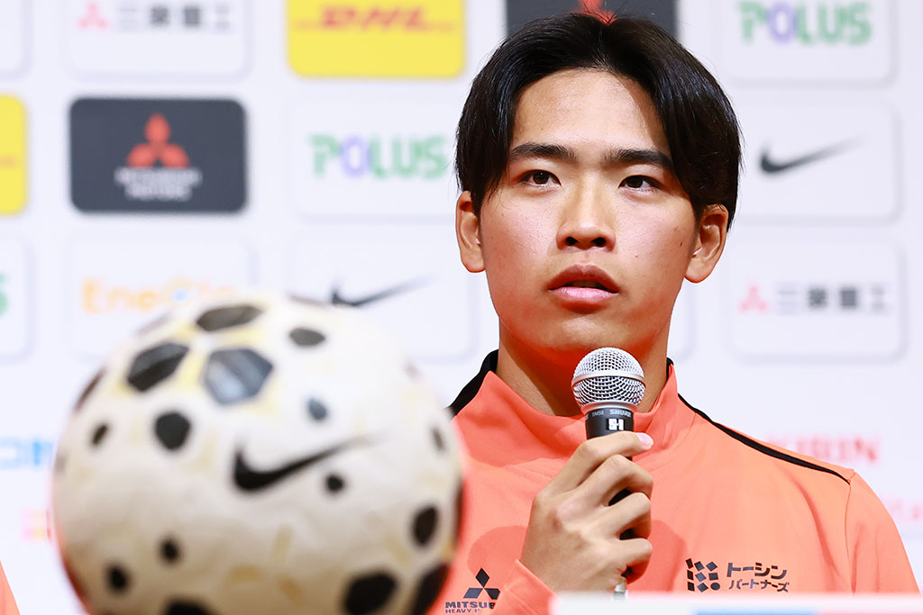 「大卒ということで即戦力として見られているので、自分は開幕スタメンを目指して頑張りたいと思っています。前への推進力と背後への抜け出しと左足のシュートが自分の特長です。得点という結果でチームの勝利、タイトルに貢献したいと思っています」