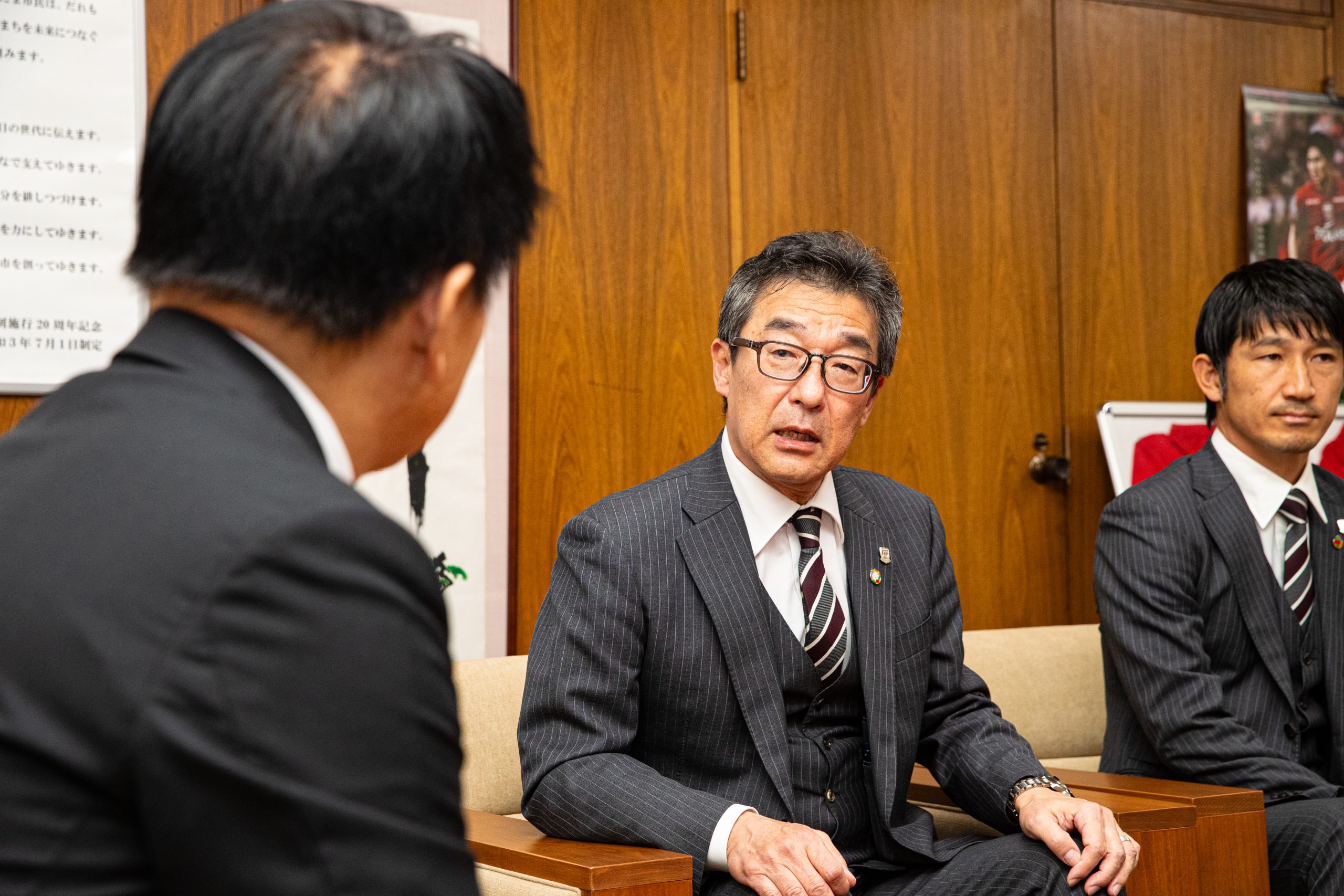 それに対し、清水市長からは、「昨シーズンの最後の2試合は本当に素晴らしかった。ぜひ今シーズンもあのようなサッカーを見せてほしい」と激励の言葉が送られた。